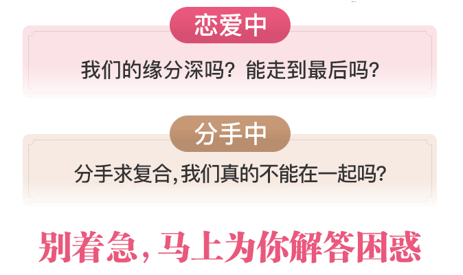 八字精批 桃花测试 流年运势 缘分测试 八字合婚 八字财运 十年大运 搬家吉日 结婚吉日 终身运势 爱情塔罗 婚姻走势