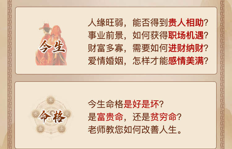 2、在您体验测算服务时,我们需要获取您的 姓名和生辰命格(出生日期),为了保证数据准确性, 我们建议您提供真实的个人信息,若您提供的信息有错误,会对测算结果的准确性造成偏差。我们保证您的所有个人信息除了用于生成测算数据以外,不会用于其他用途。